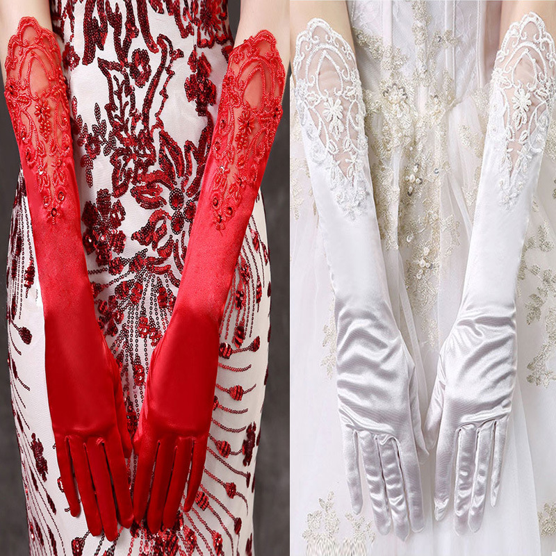 黒弾力サテン多色手袋指ディナー手袋花嫁ウェディングドレス結婚式パーティーロング手袋