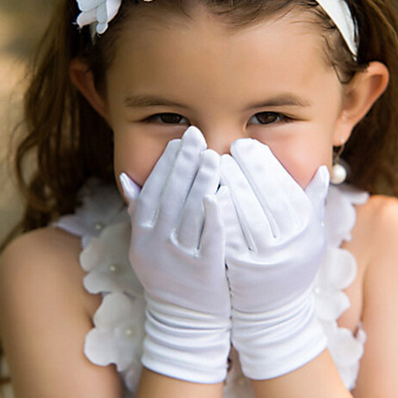 女の子の公演の手袋の花の子供のドレスはサテンの白い指の弾力性があります。