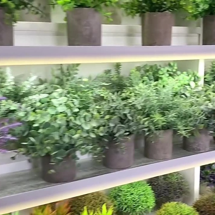 擬似偽森系庭のベランダの植物の壁の花の溝の装飾はペルシャのシダの羊の歯の葉の束の盆栽の装飾を並べます。