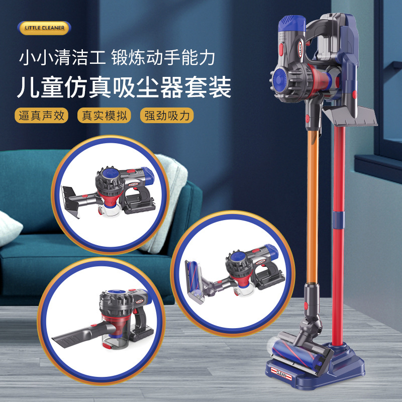 国境を越えた子供たちは、電気掃除機を掃除しておもちゃセットを掃除することをシミュレーションした