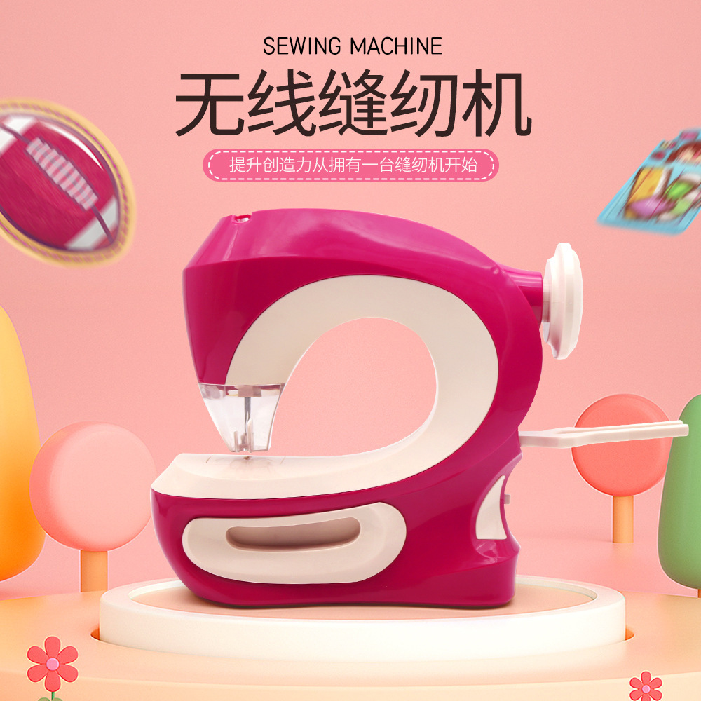 新型電動ミシンの女の子がミニ家電の裁縫機の女の子と子供のおもちゃのセットをプレゼントします。