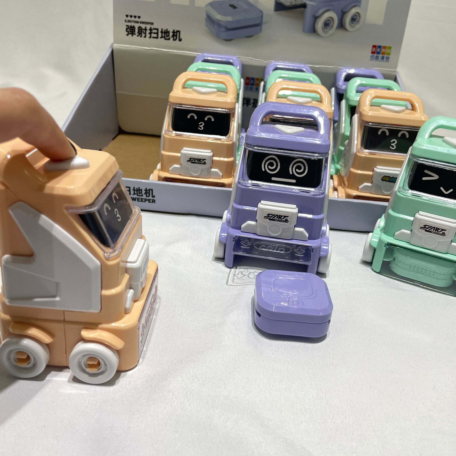 子供のおもちゃのままごとの小さい家電のおもちゃの模型の男の子はおもちゃの車を発射します。