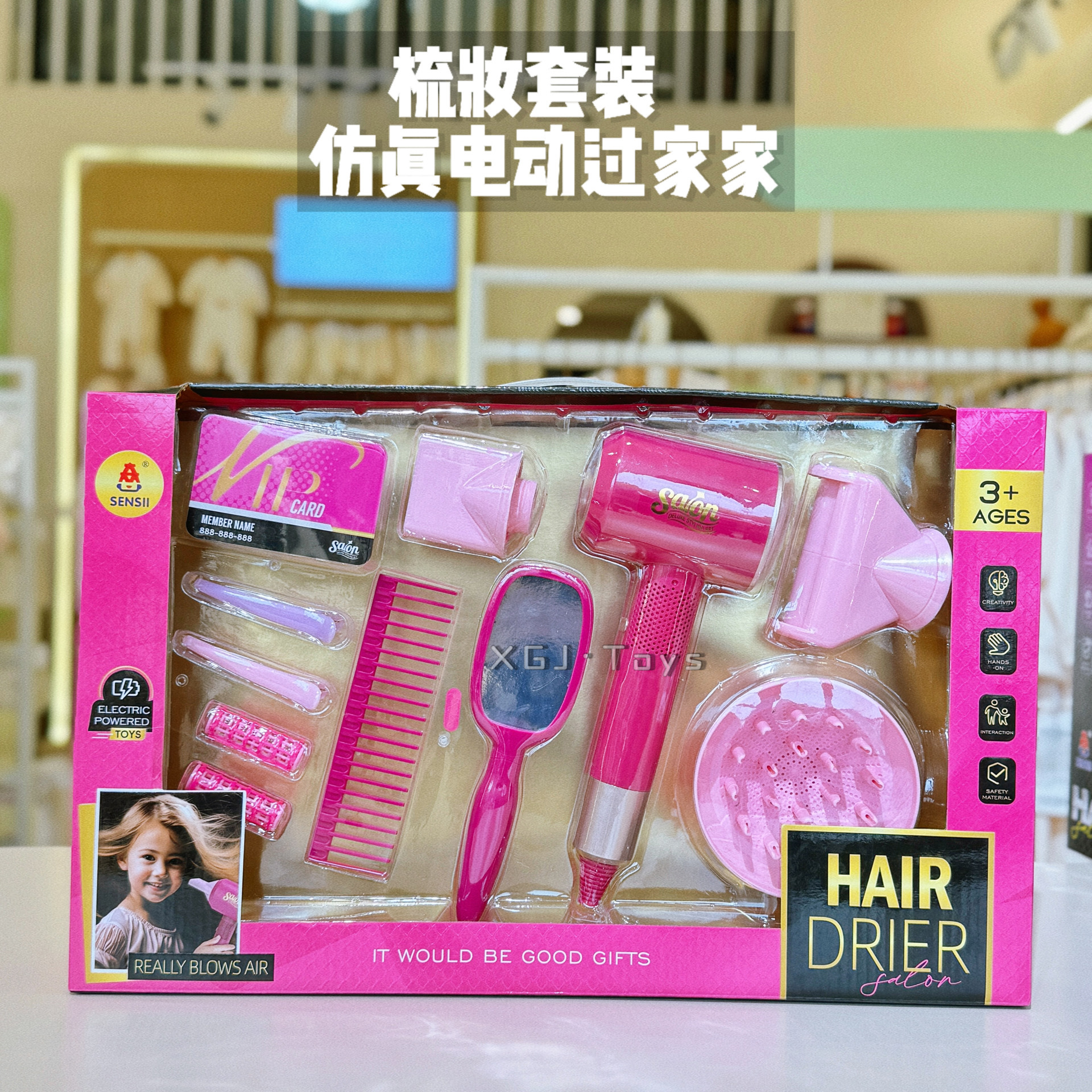 国境を越えた子供たちはヘアドライヤーサロンの女の子のおもちゃは美容ツールセットの理髪師が髪を切る