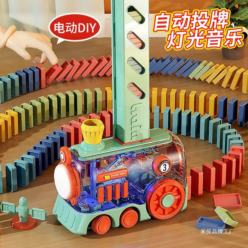 ドミノ牌積み木児童知育玩具ネット赤電動自動カード列車カード3歳から6歳