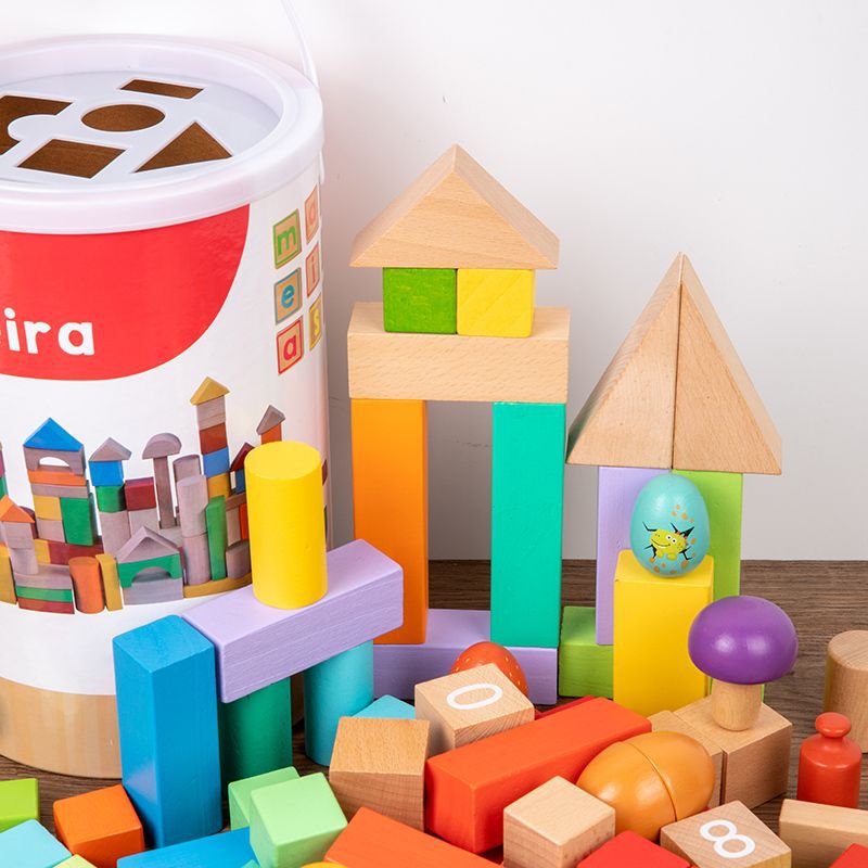 100 個の木製子供用積み木組み立てヘッド大粒子大型ベビーキャッスルおもちゃ多機能