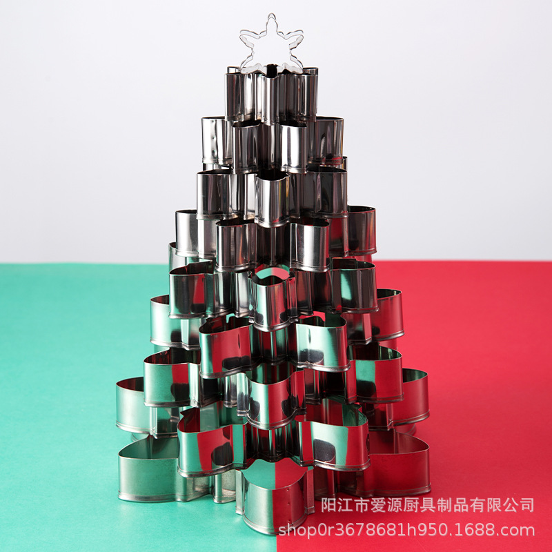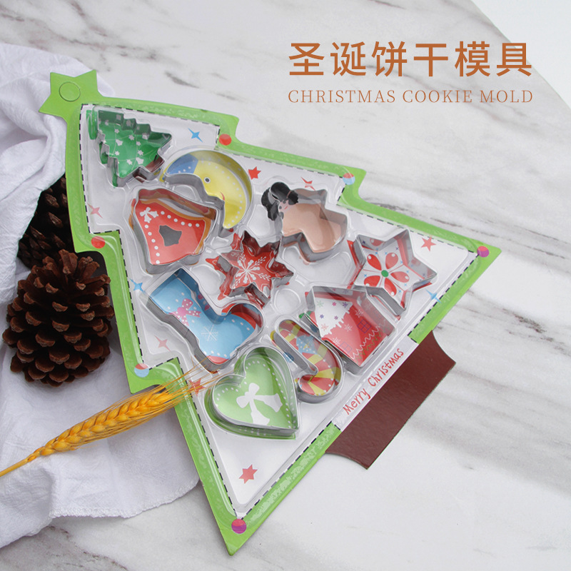 クロスボーダークリスマス雪クッキー金型10点セットステンレス3d立体クリスマスツリークッキー金型