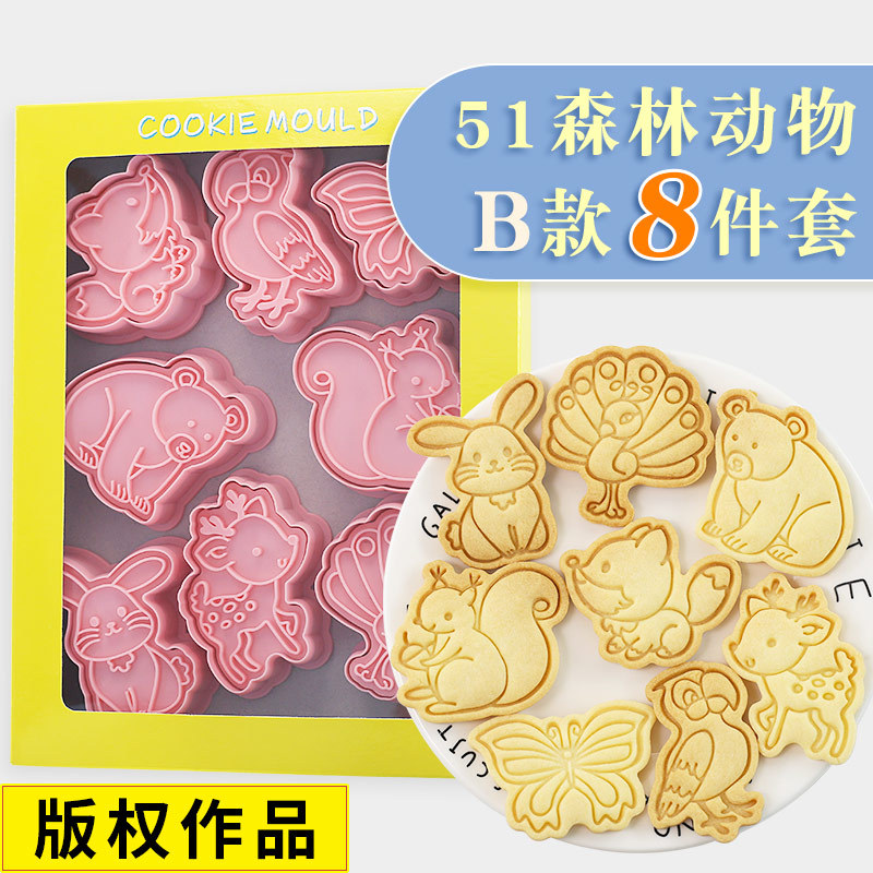 森の動物b型ビスケット金型8個の熊リスウサギ3d立体クッキープラスチックの砂糖焼き型