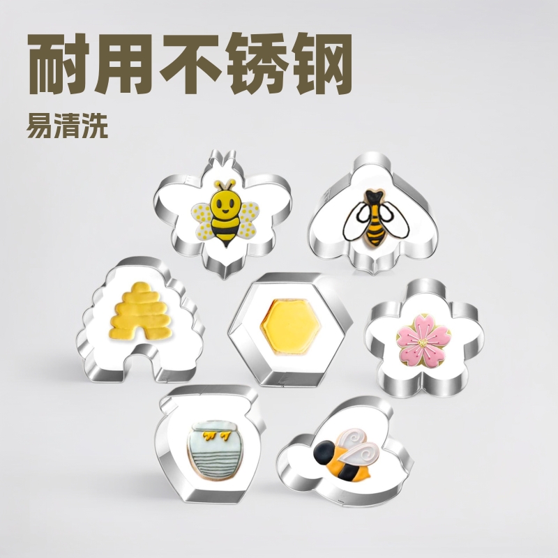 工場直販 ステンレス製クッキー型 蜂型モールド 蜂の巣デザイン 蜂の巣型