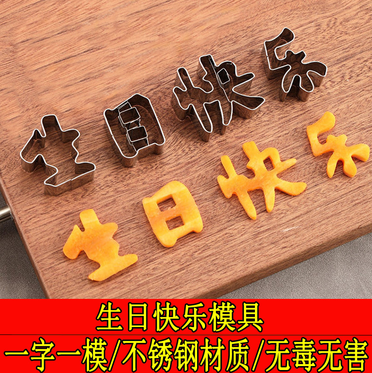 ステンレス誕生日おめでとうビスケット金型dty一体成形にんじん果物彫刻印字金型