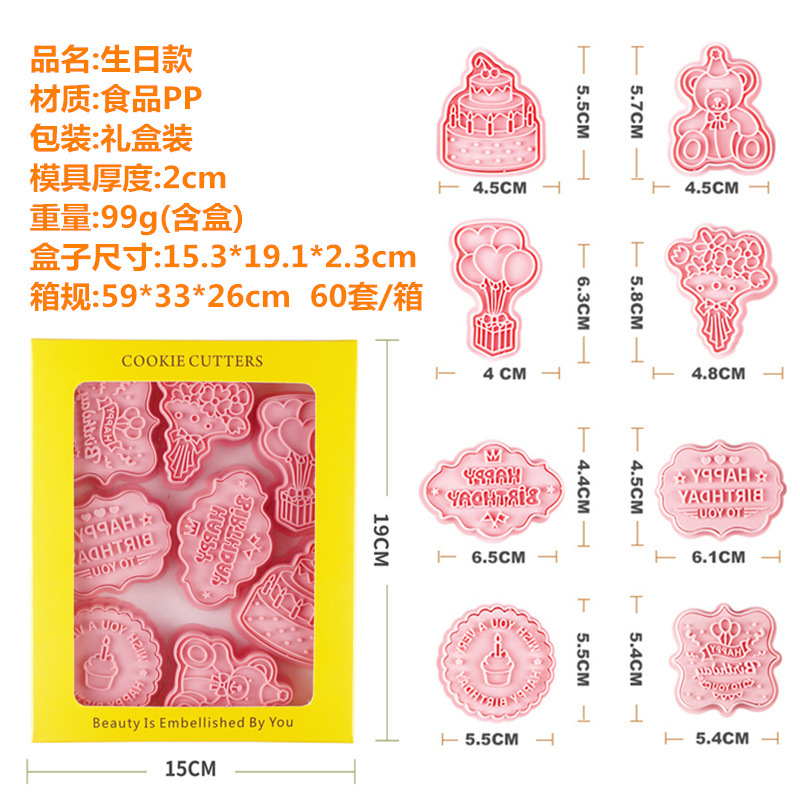 誕生日パーティークッキー金型プラスチック3d立体家庭用diyアイシングクッキー焼きケーキ菓子プレス式