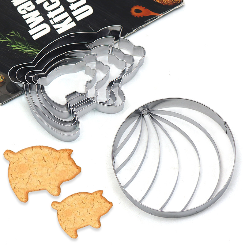 メーカー卸売りステンレス猫クッキームースリング金型5セットdiyプリント焙煎プレスツール