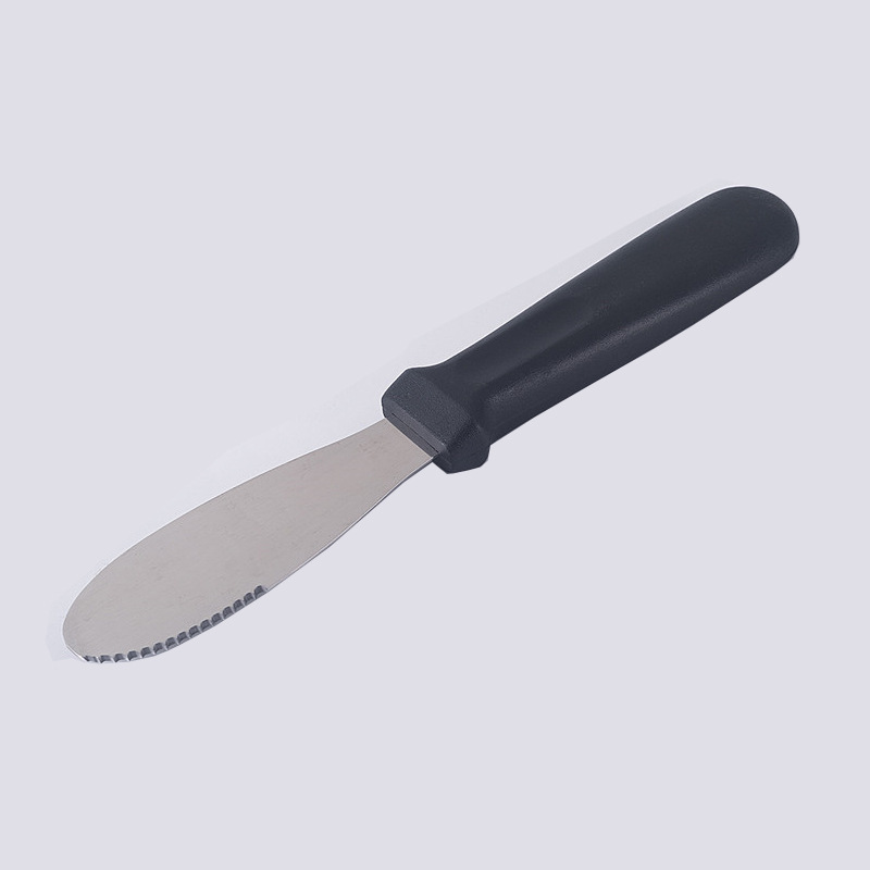 プラスチックハンドルのバターナイフは歯があります。