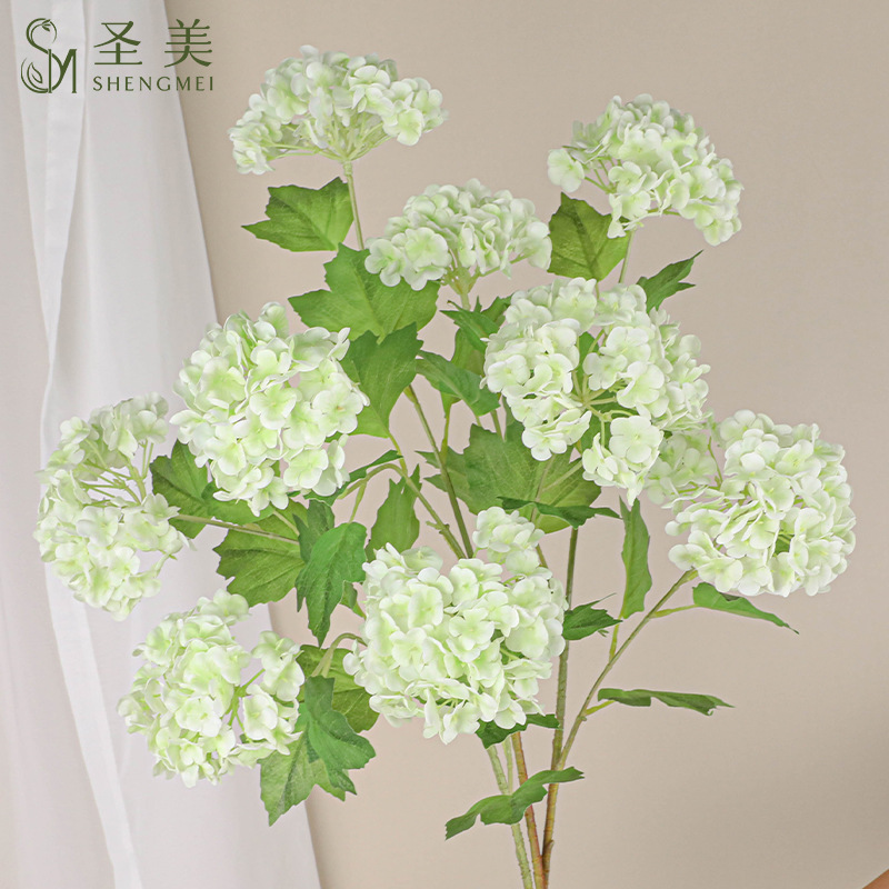 シミュレーション花3頭のゴム布の雪玉の木の刺繍ボールの小さい清新な高品質の室内の見本の板の間で装飾の造花の卸売りを飾ります。