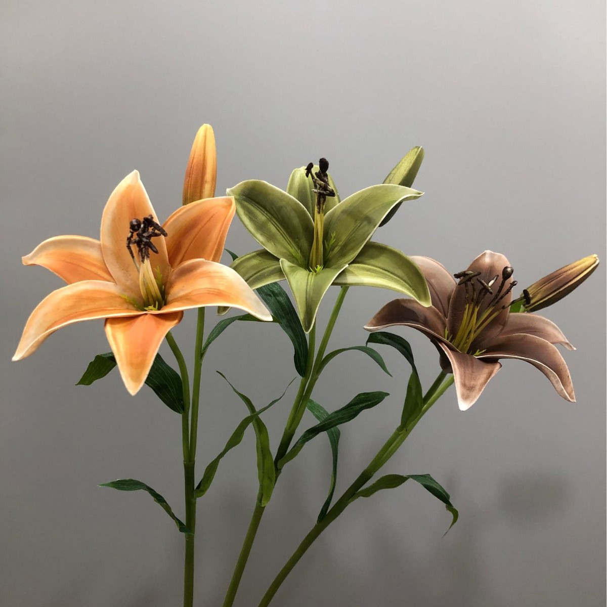 模造花3頭糊布百合結婚祝い講堂装飾3dプリント造花花壁撮影道具メーカー卸売り