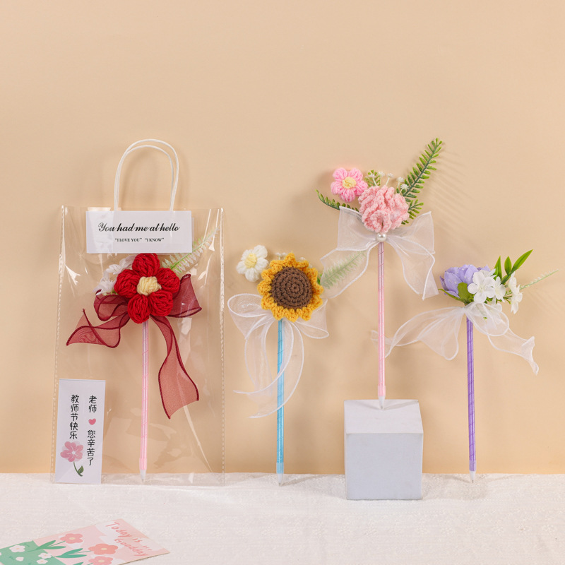 造花、人工花、手編み毛糸花、パフひまわり、ペン付き文房具、クリエイティブギフト、卸売、お土産