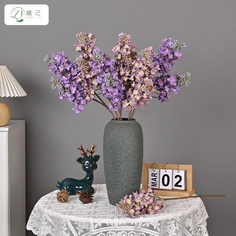 高いシミュレーションのゴムの布のライラックのあじさいの造花の客間の家庭の置物の生け花の装飾の結婚祝いの撮影のあじさいのライラックの花