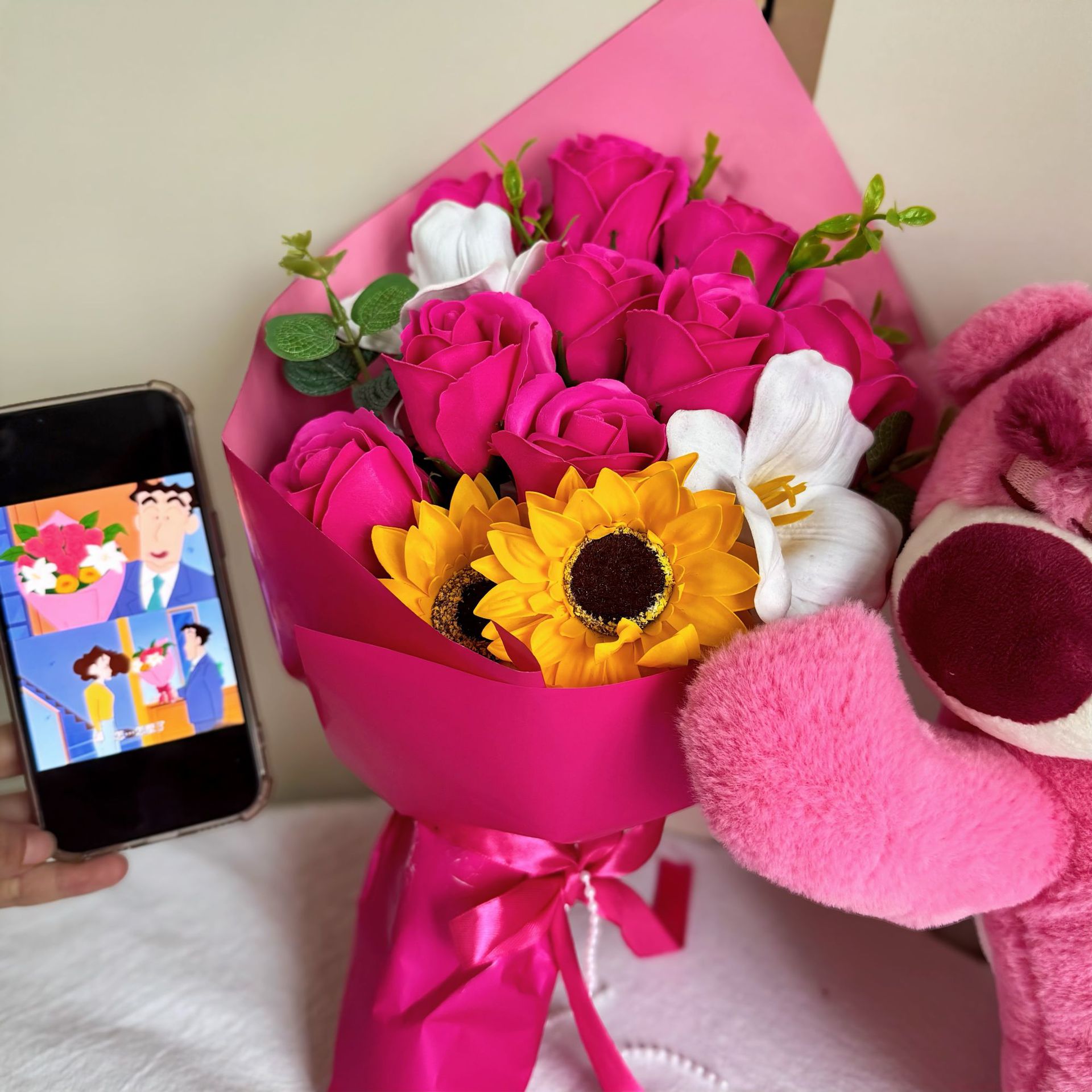 クレヨンしんちゃんのバラの花束のシミュレーション花広志さんは、誕生日プレゼントを彼女の友達にプレゼントします。