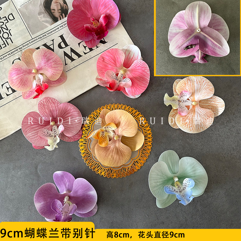 ✅韩系甘さ9cm胡蝶兰フラワーヘッド (ピン付き) ヘッドアクセサリーブローチ结婚式高品质装饰