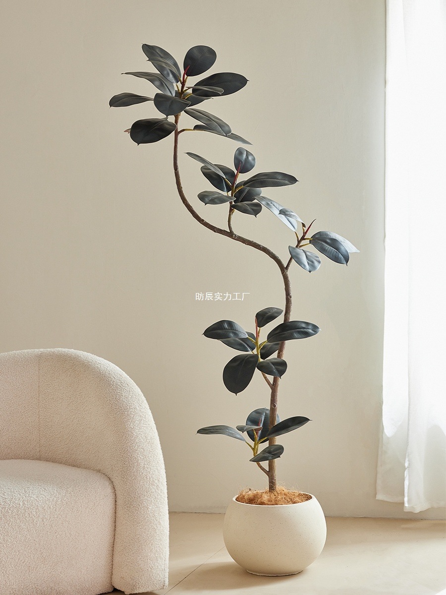 ブラックダイヤモンドゴムツリー模擬緑植物ハイエンドライト高級リビングルーム装飾品大型床置きわび寂しさスタイルバイオニック偽植物