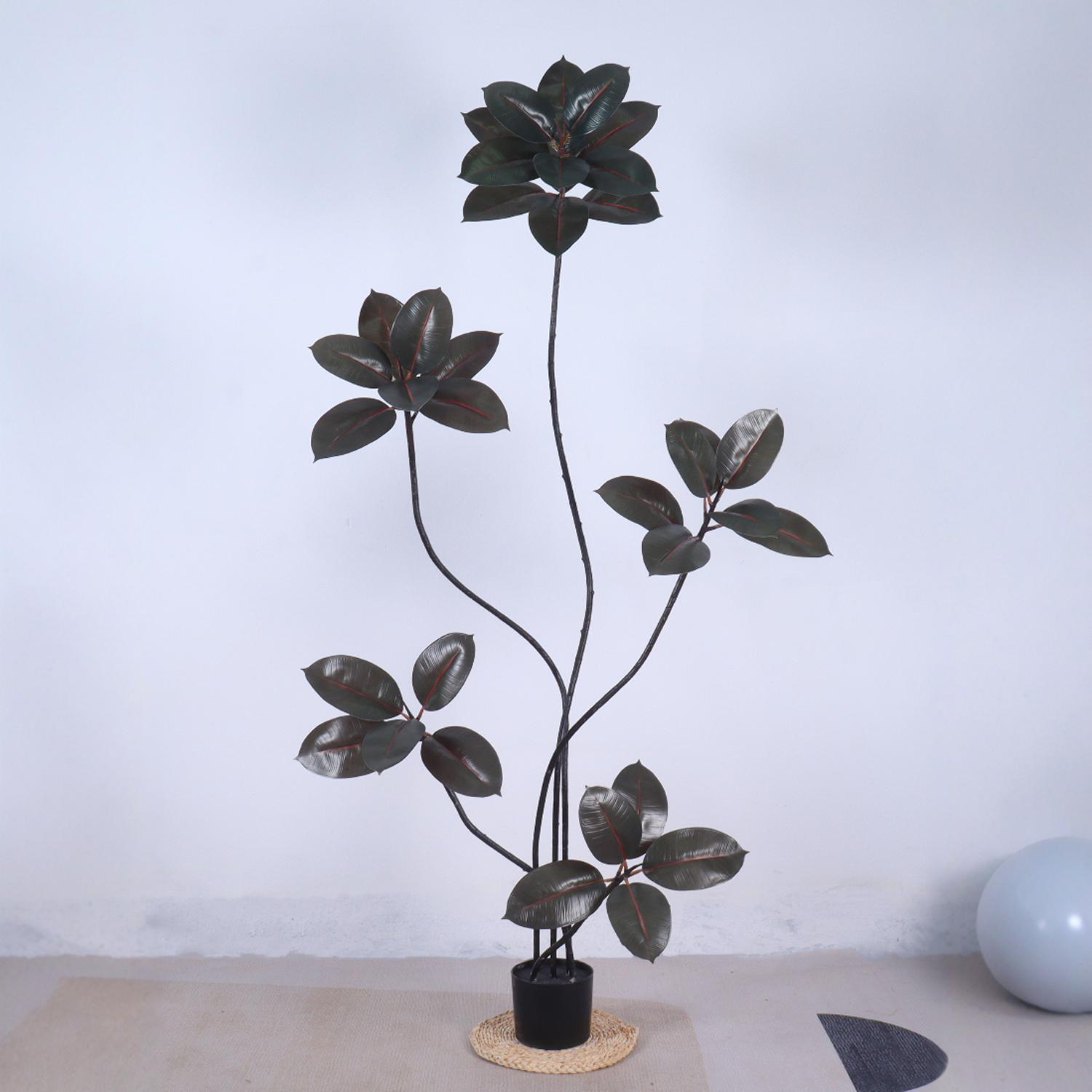 ゴムの葉人工盆栽植物ブラックダイヤモンド床庭造園装飾鉢植え装飾品リビングルーム