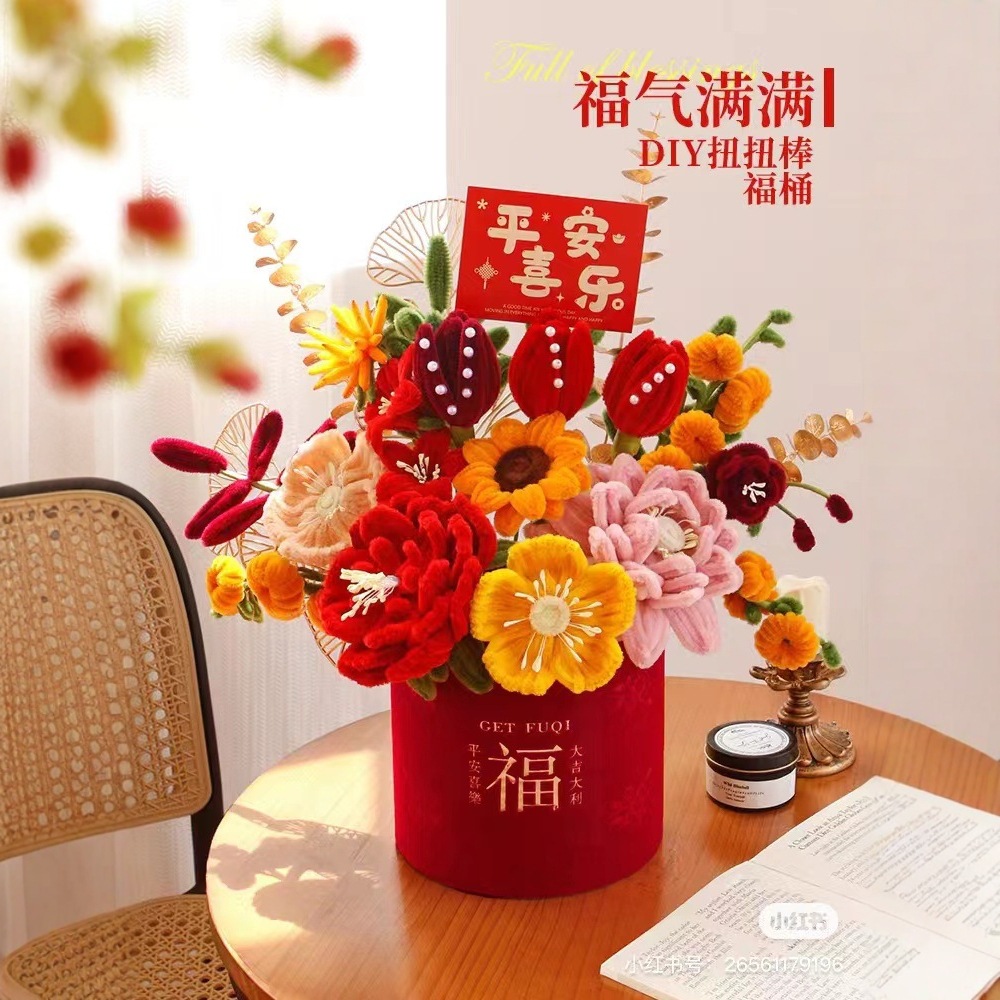 ねじり棒福桶diy新年抱っこ桶花束材料包自作手作り品は友人の親友にプレゼントする