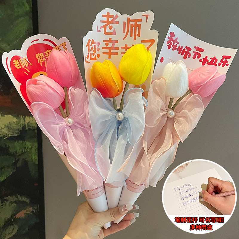 オリジナルの新しい実用的な贈り物の花束の金香の花の筆の幼稚園の郁の入学の教師の日の永生の花の筆のサインペン