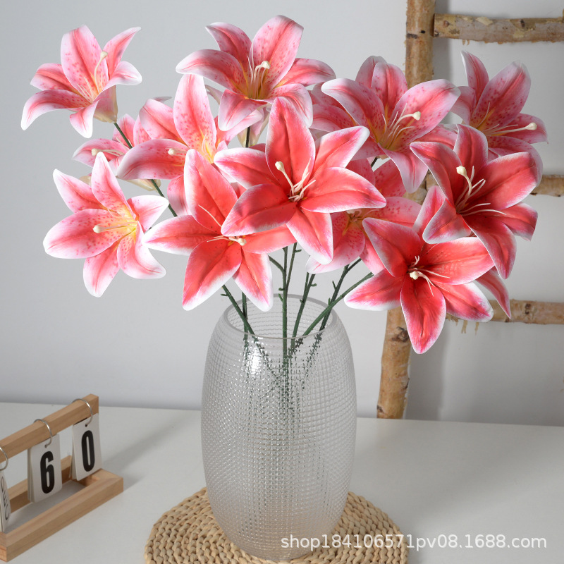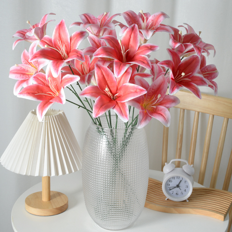 シミュレーション花3頭のゴム布百合北欧家庭結婚祝い講堂装飾花壁人工花撮影道具卸売り