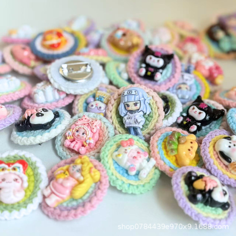 完成品編みアクセサリーブローチ服パターン編みアクセサリー子供の人物小さなプレゼントカバン装飾卸売