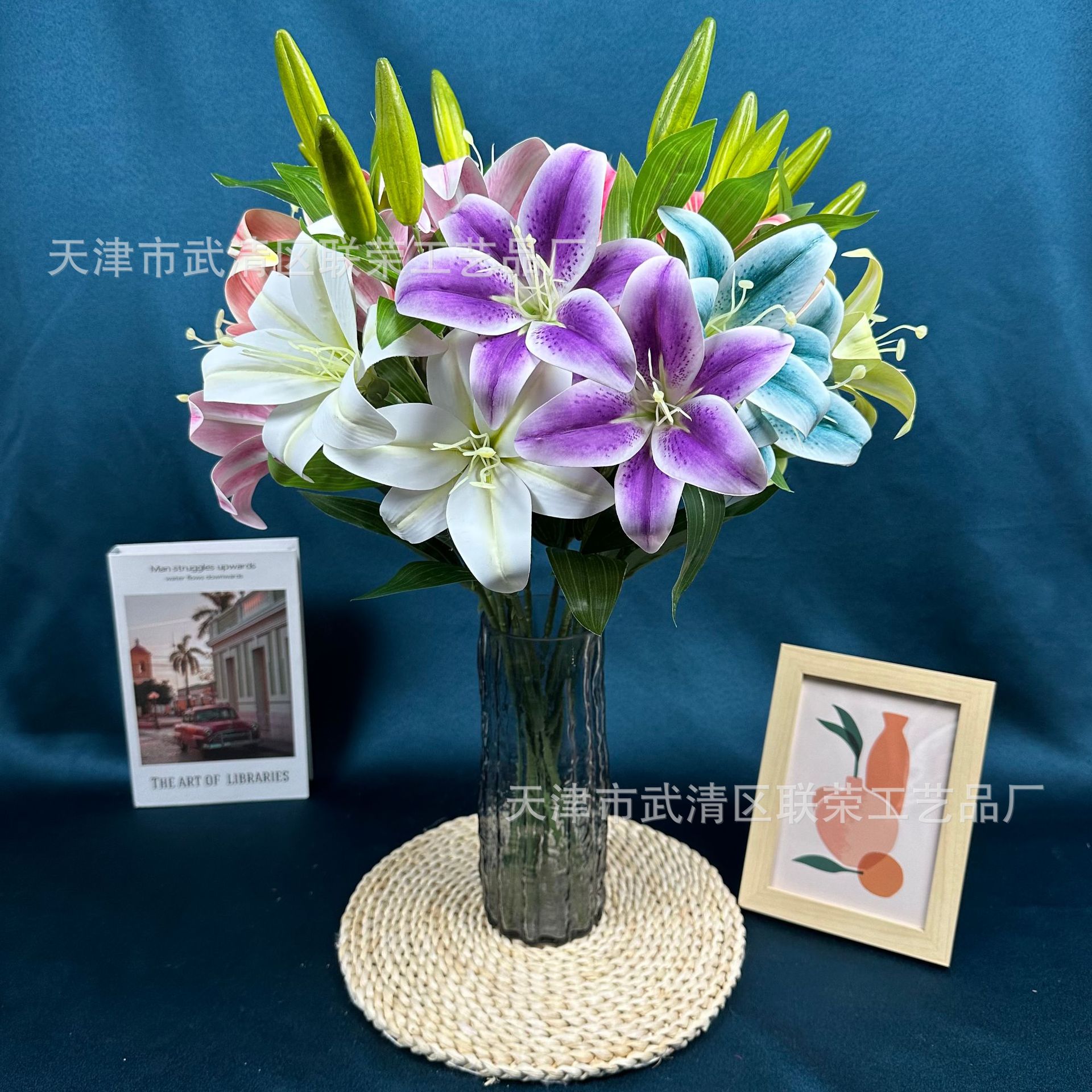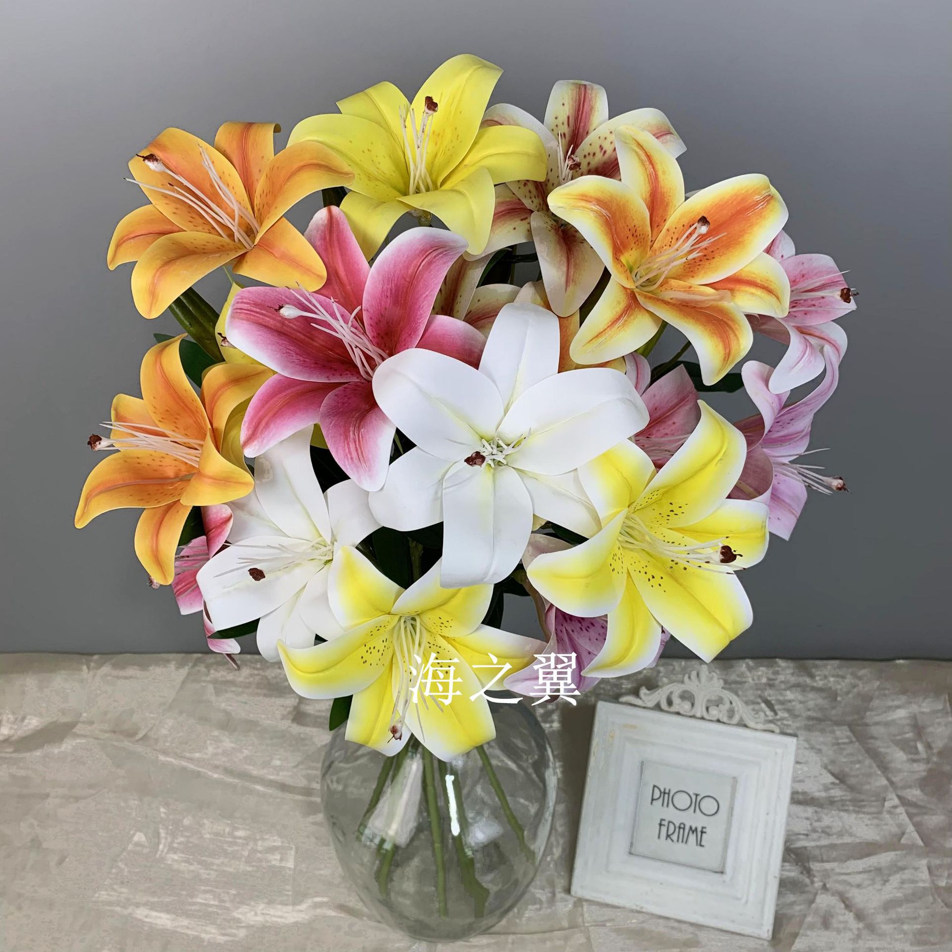 ウェディングシミュレーション花3d百合2花1蕾ゴム布手触り小百合結婚式造景配置花材卸売り