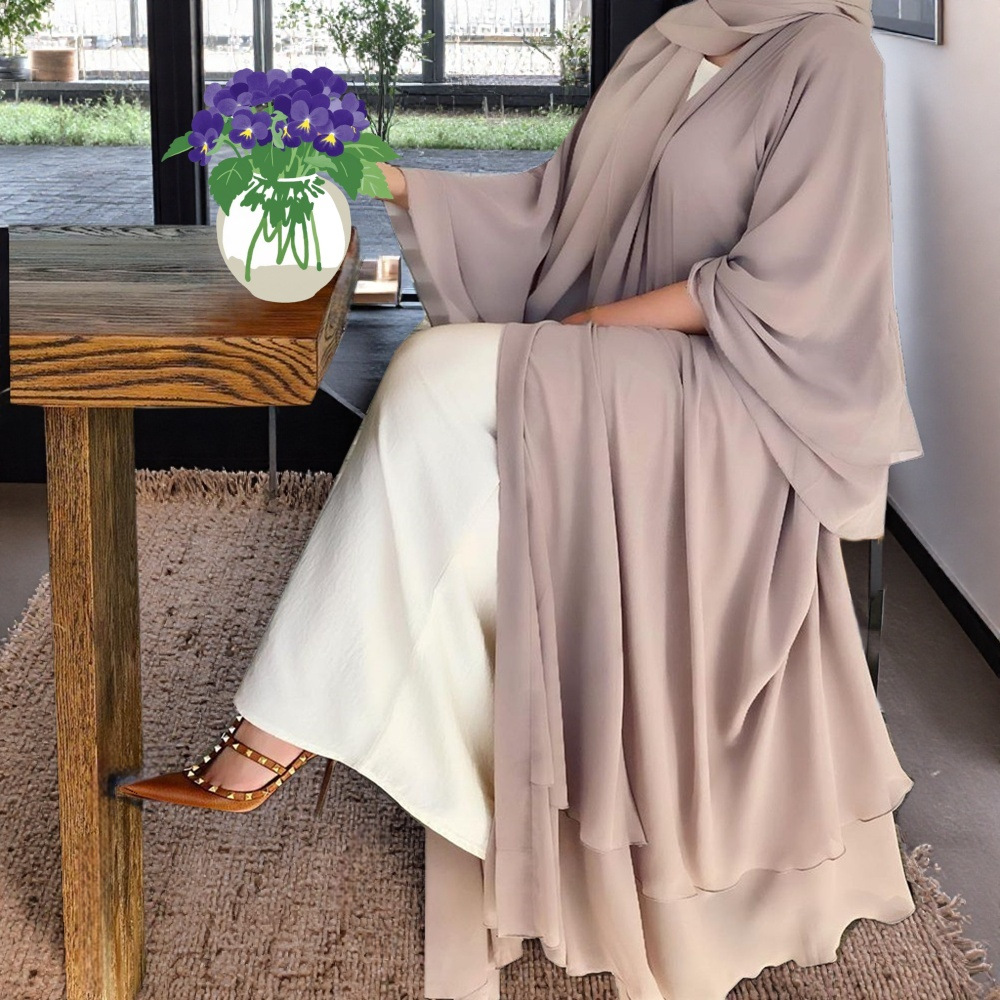 カスタマイズされた中東の女性のイスラム教徒カーディガンローブ二層シフォンツーピースアバヤファッションムスドバイスカート