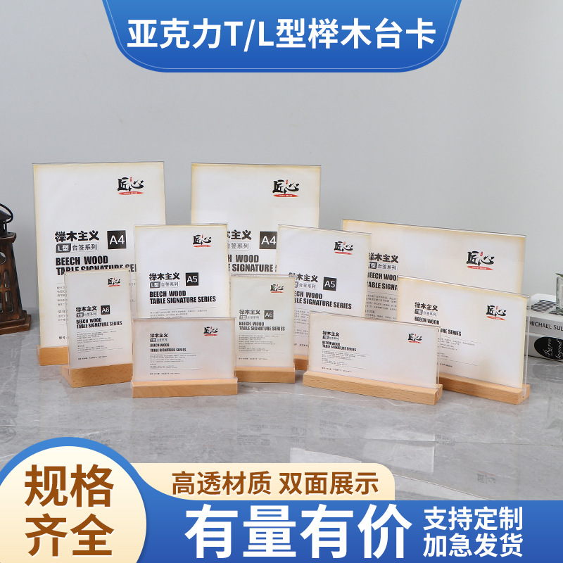 アクリルt型ケヤキ台カード二次元コード展示カード実木食札木テーブルカードl型酒水札台札
