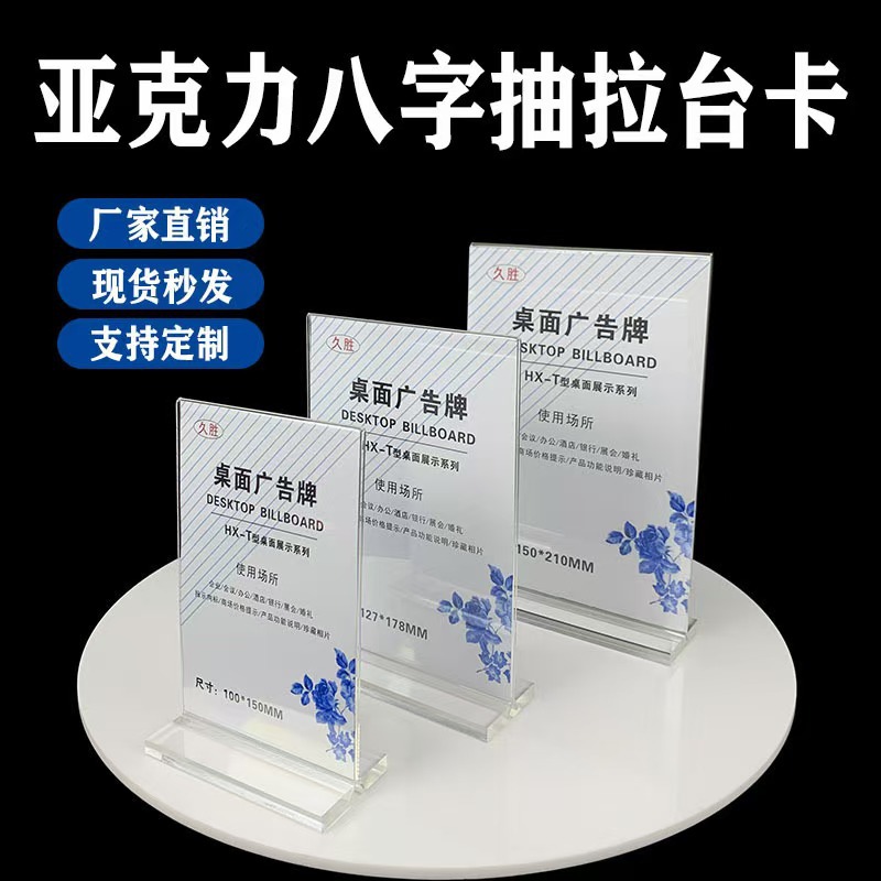 透明アクリル縦型台カードt型八字引き式両面台札酒水牌工位札置き台