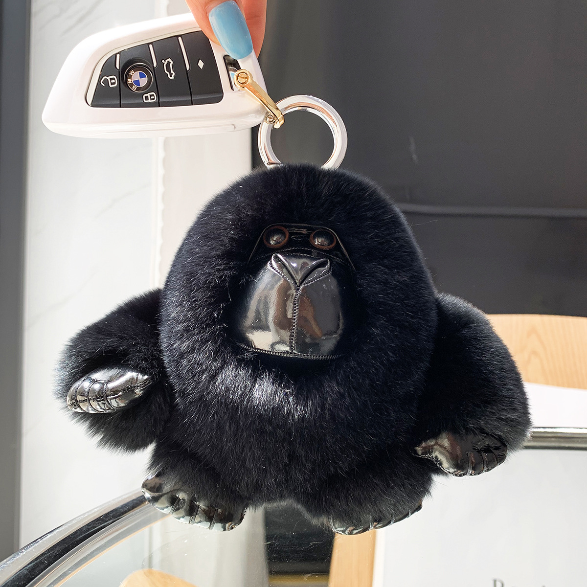 【覇気チンパンジー】本物のウサギ毛チンパンジーのバッグがかわいいぬいぐるみの車のキーホルダー男性