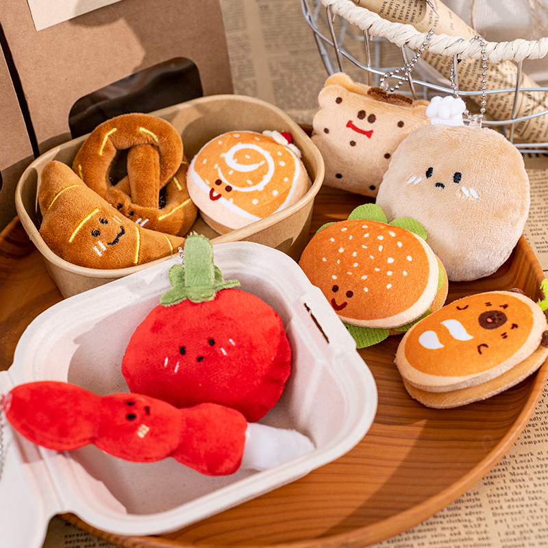 ぬいぐるみバーガーサンドイッチキーホルダーアルカリ水パンぬいぐるみペンダント小さな人形卸売食品おもちゃチェーン