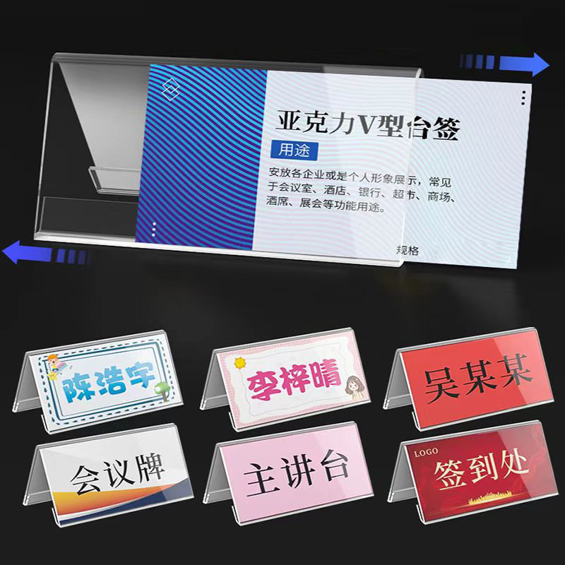 学生のテーブルの札の名前はブランドの透明な三角の会議の札のアクリルの価格の札のデスクトップの展示の札の両面の席のカードです。