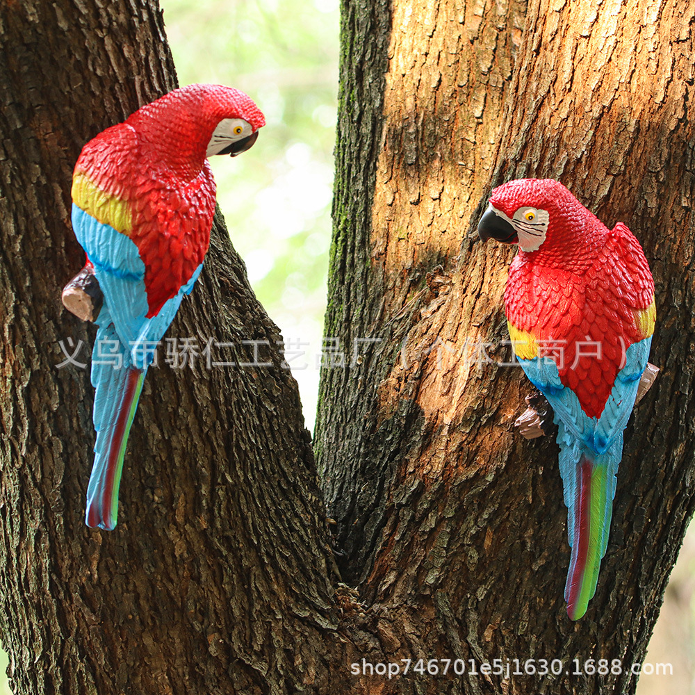 国境を越えたアマゾンは壁掛けオウムの木に壁に樹脂工芸品の装飾品を飾って鳥の模型を作った