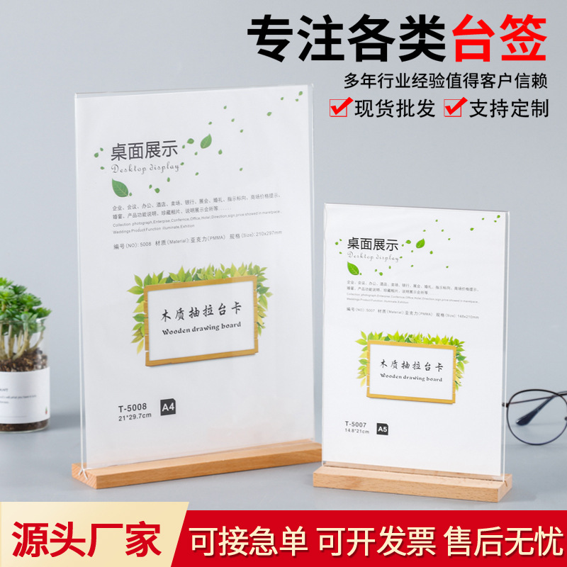 アクリル台カード木製ベース実木テーブルカードa4展示ブランド価格ブランド看板メニュー料理価格表