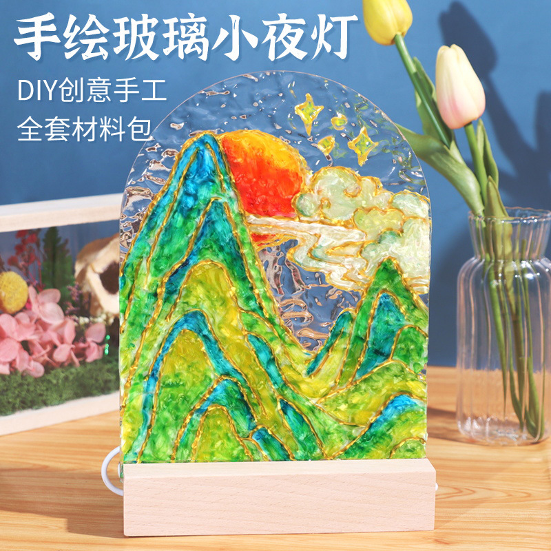 水波紋透明アクリルガラス画板diy落書き彩色チューリップ雰囲気感小夜灯置物