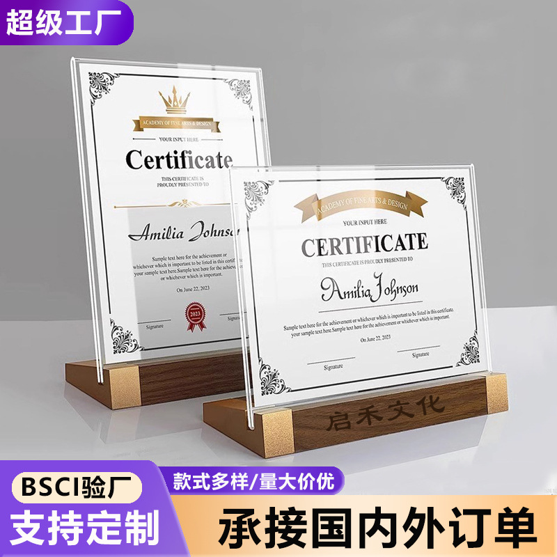 A4 クルミテーブルカードアクリルディスプレイカード会議室アイデンティティディスプレイカード木製ベースロゴ彫刻カスタマイズ