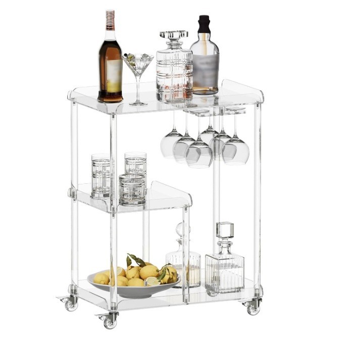 アクリルバー車4個付きロック可能車輪3層透明サービス車スタンド付きスクロール飲料車