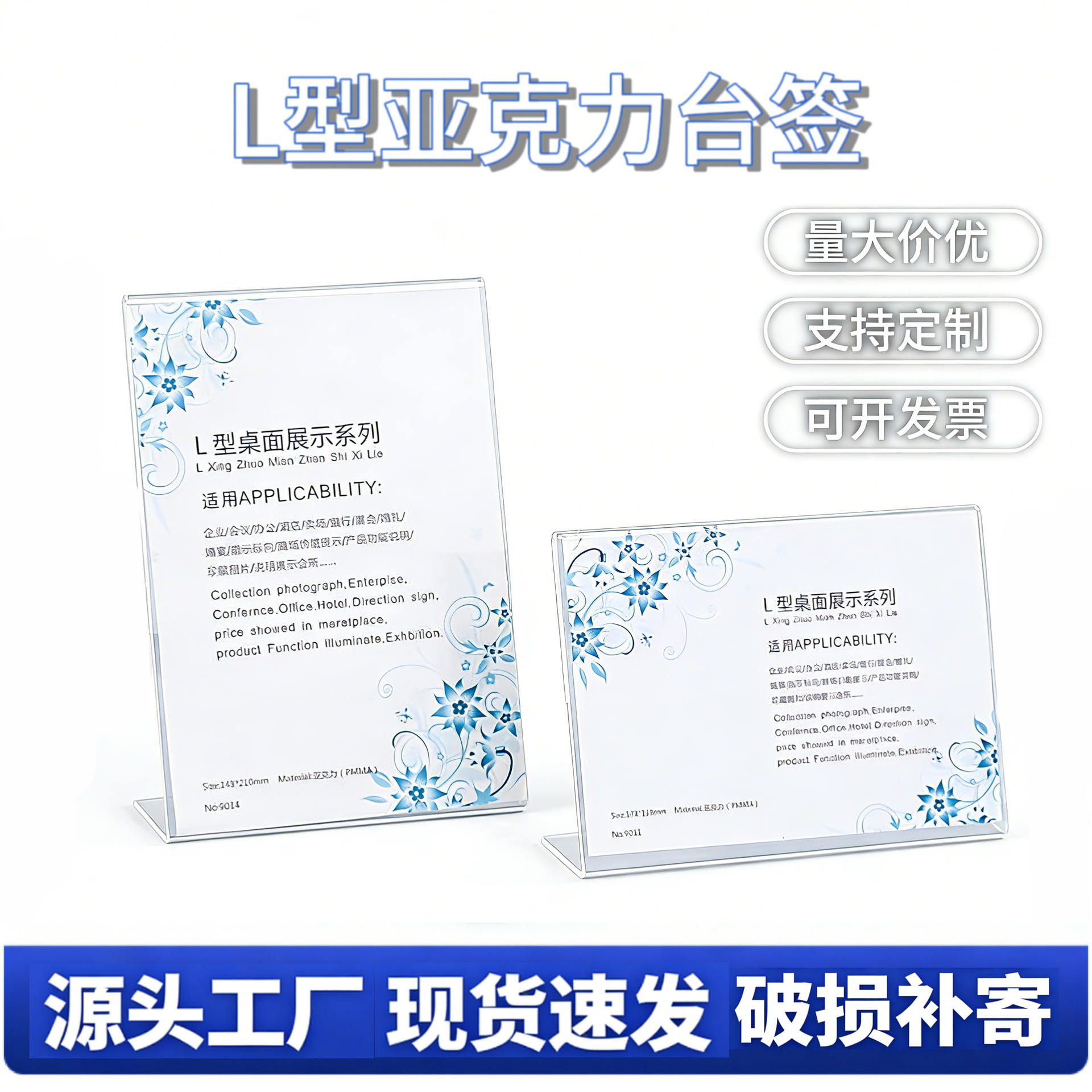 工場直販アクリル透明L字型商品テーブルカードテーブルカード値札表示カード値札スタンドカードテーブルカード