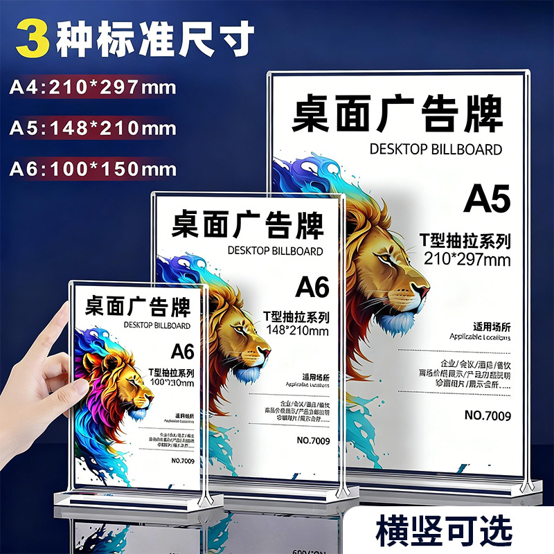 アクリル透明台カードa4デスクトップ酒水広告強磁気展示価格ブランド引き式T型メニュー台札