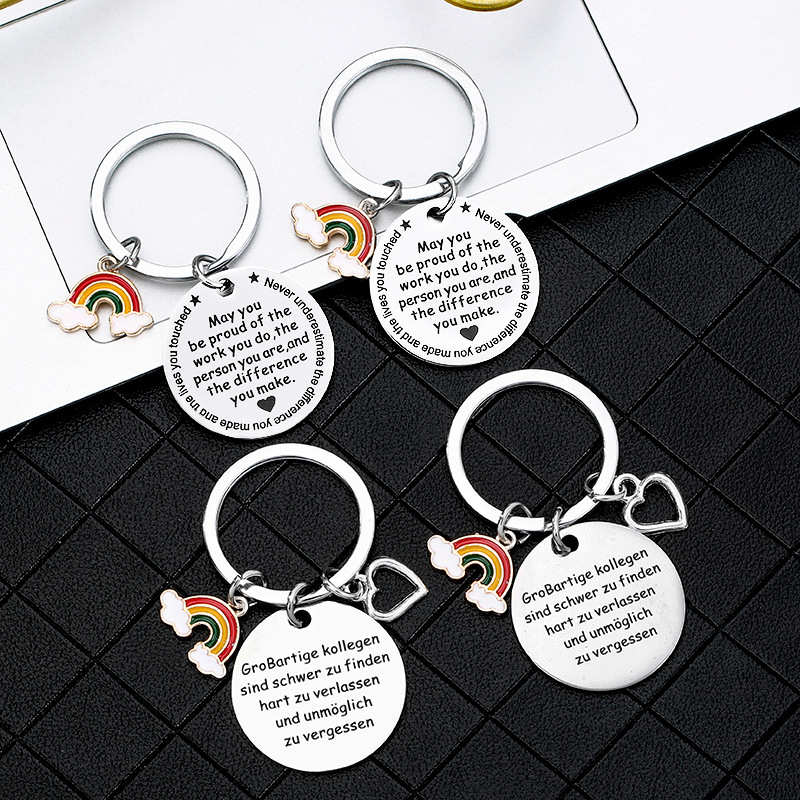 アマゾン欧米の国境を越えて人気のあるステンレスのキーホルダー虹のアイデアは友人に別れを告げる贈り物を彫ることができる