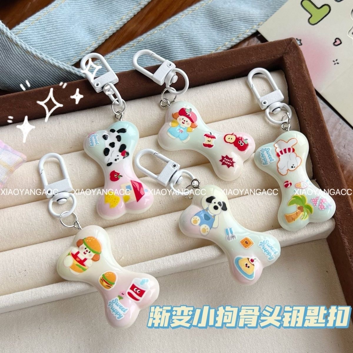 かわいい日系子犬の骨の白いキーホルダー学生の親友カップルのかばんストラップ