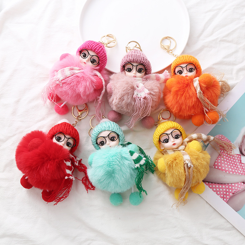 新型のウサギの毛の大きい目の萌えの人形のキーホルダーの漫画のかわいいぬいぐるみの車のキーチェーンのカバンのペンダント