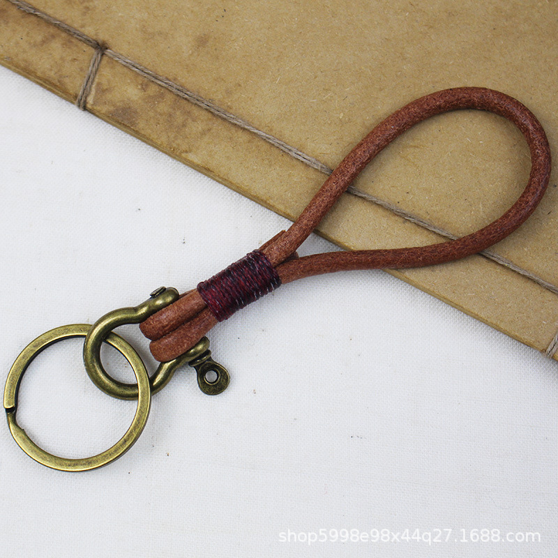 手作りのトップ層の牛革のキーホルダーはアルカリ水結びの馬蹄のキーホルダーの高級な創意の個性の復古のペンダントを掛けます。