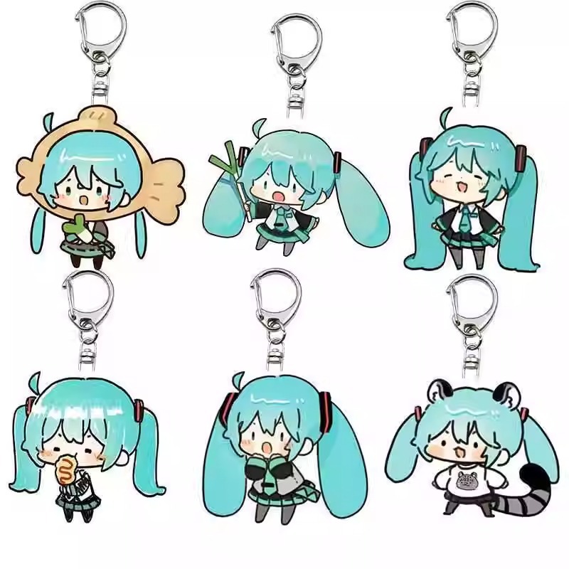初音ミクキーホルダーアクリルアニメ周辺グッズ女の子向けクリエイティブで可愛い小物飾りリボン付き