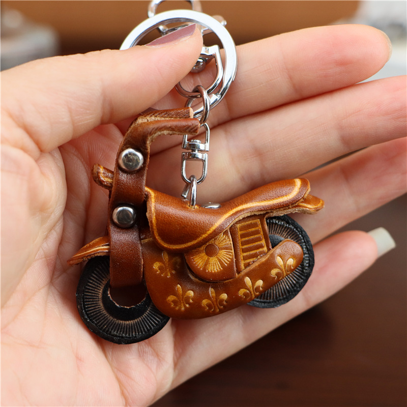 トップ層牛革ミニバイクキーホルダーペンダント創意個性機関車バッグアクセサリー可愛いプレゼント