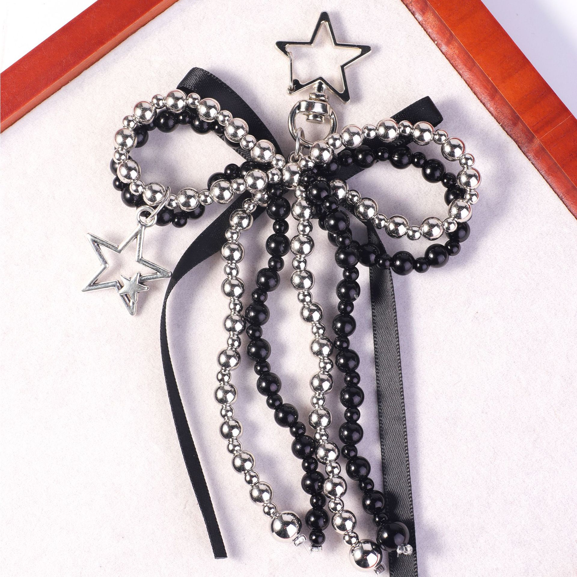 創意新作の軽豪華な黒い蝶結びは真珠の星のペンダントのキーホルダーのリュックサックの装飾に似せています。