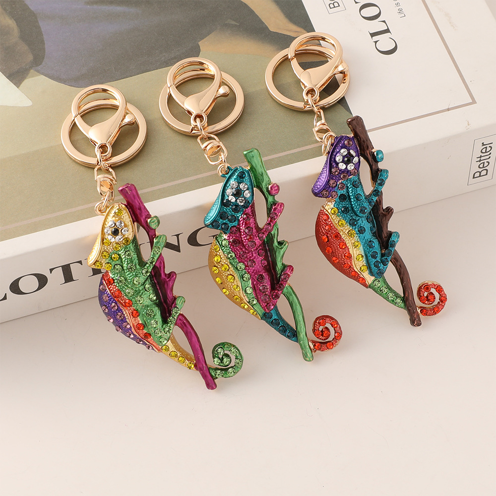レトロなカラーのダイヤモンドのカメレオントカゲのカラフルな動物のキーホルダーのキーホルダーのキーホルダーのペンダントの小さい贈り物の卸売り